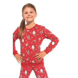 Dívčí pyžamo 032/163 Gnomes3 Cornette - vyrobené z vysoce kvalitní a měkké bavlny - tričko je červené barvy s dlouhými rukávy - zdobené vánočním potiskem - dlouhé kalhoty s barevným potiskem