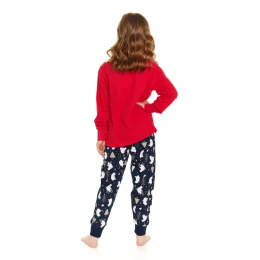 Dívčí pyžamo 5264 red Doctornap - z velmi kvalitní bavlny - červené tričko s dlouhými rukávy - zdobené potiskem na přední straně - dlouhé vzorované kalhoty s kapsami - rukávy a nohavice zakončené manžetami - vánoční motiv - certifikát OEKO-TEX Standard 100