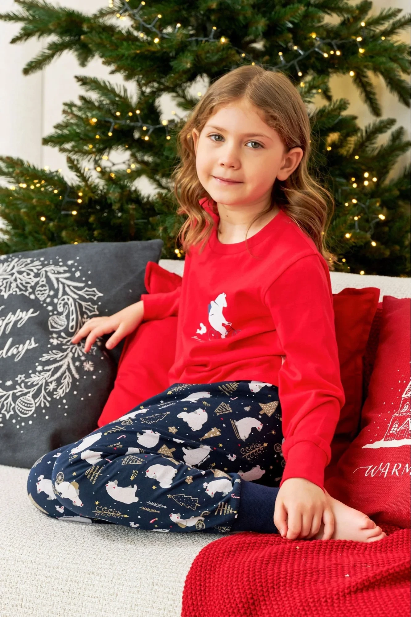 Dívčí pyžamo 5264 red Doctornap - z velmi kvalitní bavlny - červené tričko s dlouhými rukávy - zdobené potiskem na přední straně - dlouhé vzorované kalhoty s kapsami - rukávy a nohavice zakončené manžetami - vánoční motiv - certifikát OEKO-TEX Standard 100