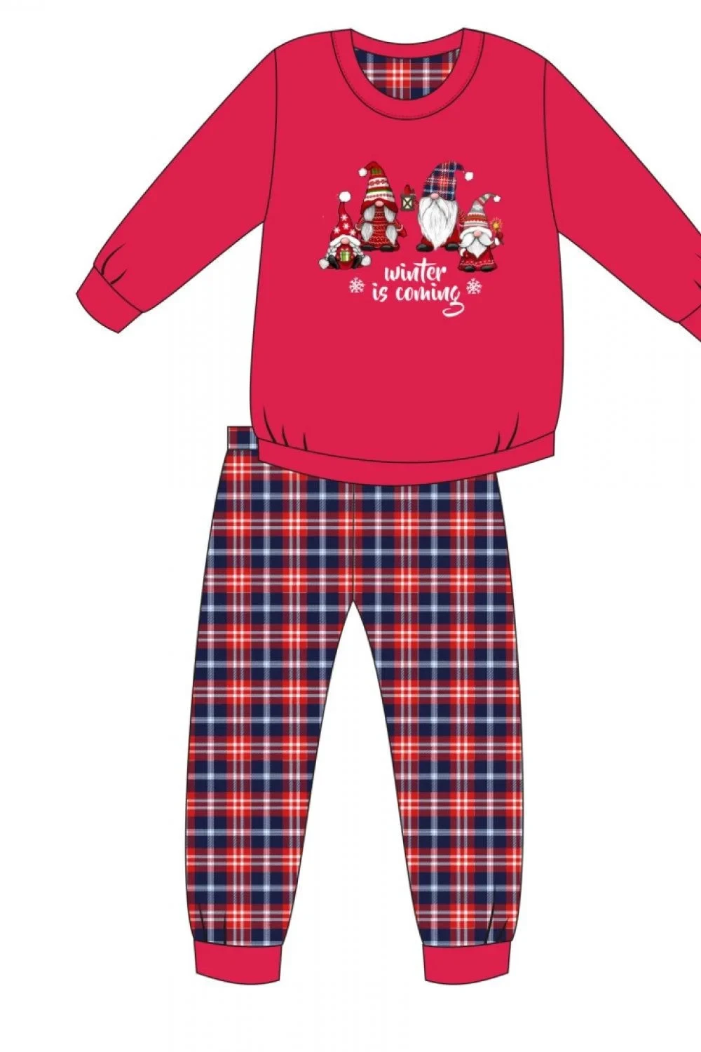 Dívčí pyžamo 594/147 Gnomes Cornette - vyrobené z vysoce kvalitní a měkké bavlny - červené tričko s dlouhými rukávy - s úžasným potiskem - dlouhé kárované kalhoty