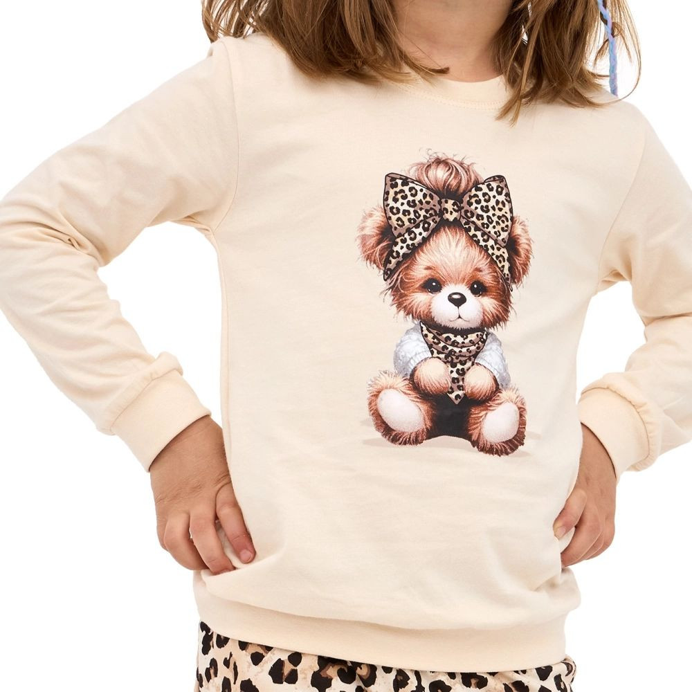 Dívčí pyžamo 594/191 Panther CORNETTE - z vysoce jakostní bavlny - béžové tričko s dlouhými rukávy - kulatý výstřih - přední strana ozdobená potiskem - dlouhé vzorované kalhoty zakončené stahovacím lemem