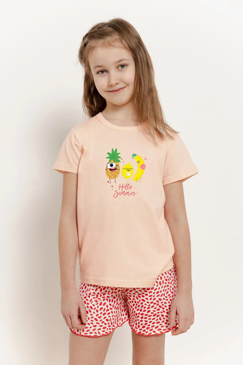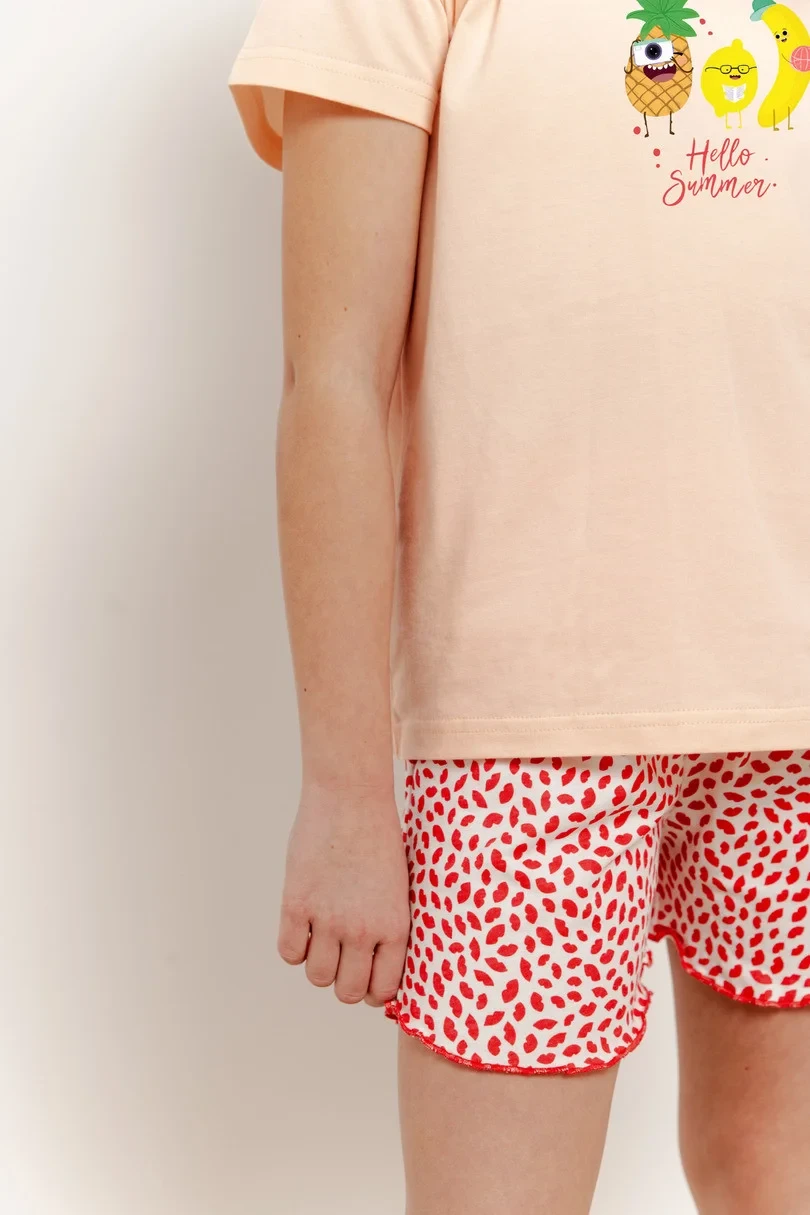 Piżama dziewczęca Sweety od Taro to idealny wybór na ciepłe noce. Wykonana w 100% z wysokiej jakości, miękkiej bawełny, zapewnia maksymalny komfort i przewiewność. Koszulka z krótkim rękawem ozdobiona jest uroczym, kolorowym nadrukiem, który przypadnie do gustu każdej dziewczynce. Do kompletu dołączone są krótkie, wzorzyste spodenki, gwarantujące swobodę ruchów i wygodę noszenia. Całość zapakowana w praktyczny foliowy woreczek.