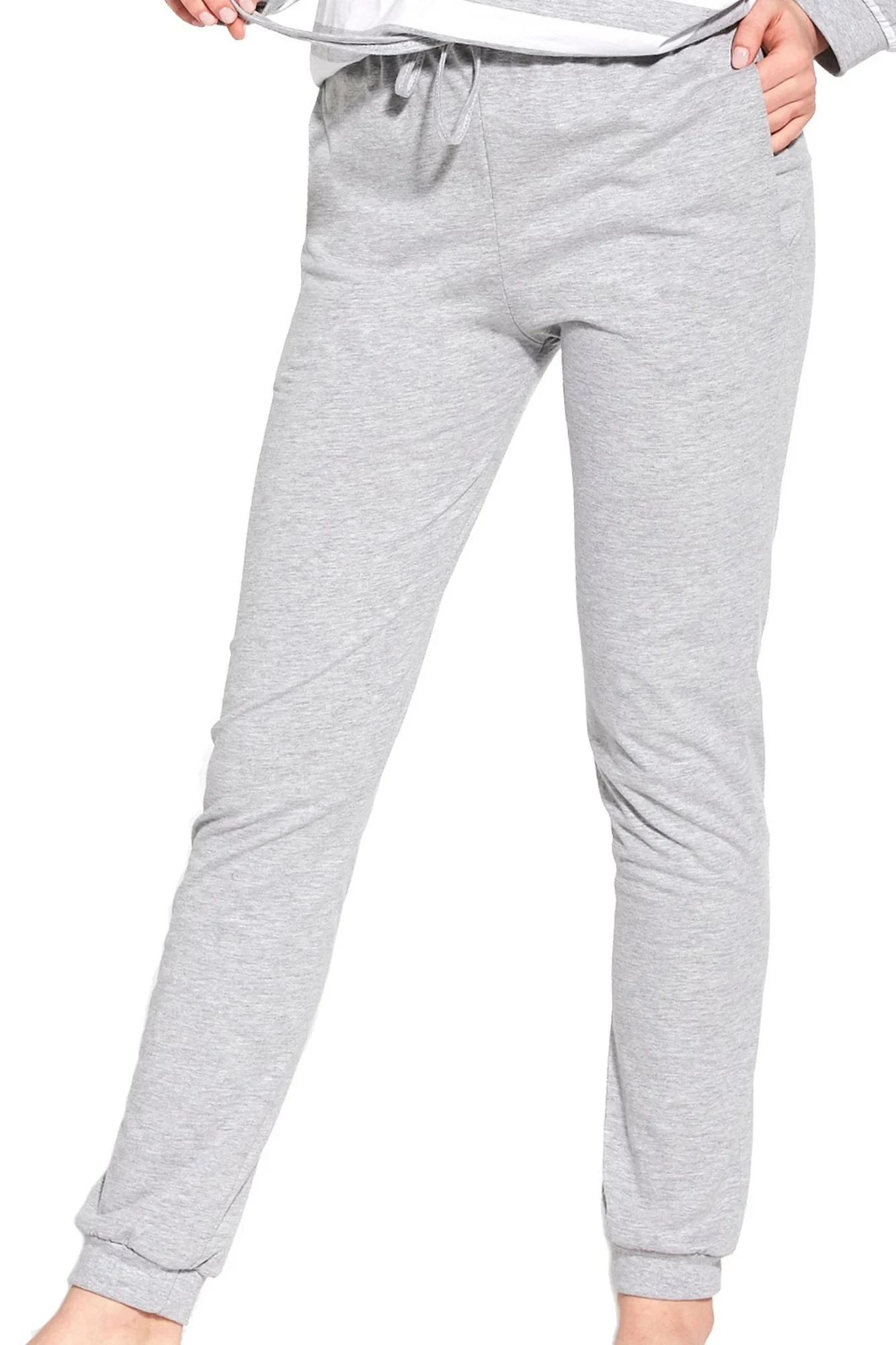 Dívčí pyžamo 948/173 Molly CORNETTE - vyrobené z vysoce kvalitní a měkké bavlny - šedé pruhované tričko s dlouhými rukávy - dlouhé šedé kalhoty s kapsami