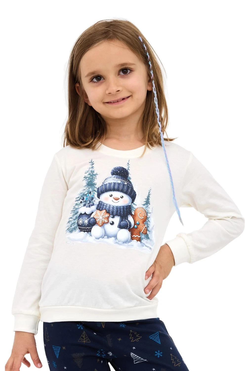 Dívčí pyžamo 977/189 Snowy day CORNETTE - z vysoce jakostní bavlny - krémové tričko s dlouhými rukávy - kulatý výstřih - přední strana ozdobená potiskem - dlouhé vzorované kalhoty zakončené stahovacím lemem