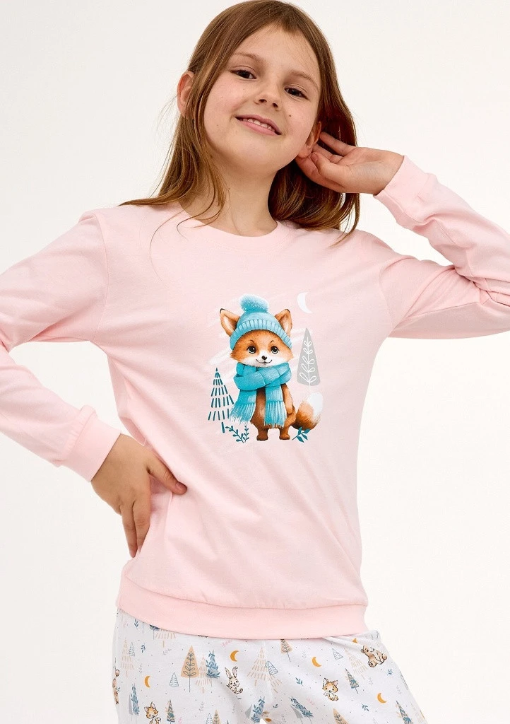 Nechte svou malou princeznu usínat s úsměvem v dívčím pyžamu Cornette. Tento rozkošný set kombinuje jemně růžové tričko s liščím motivem a hravé kalhoty s potiskem lesních zvířátek - ideální pro pohodlný spánek i sladké sny.