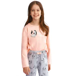 Dívčí pyžamo 2615 Sarah pink Taro - vyrobené z vysoce kvalitní a měkké bavlny - růžové tričko s dlouhým rukávem a roztomilým potiskem - dlouhé vzorované kalhoty