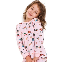 Dívčí pyžamo 2834 Laura Taro - vyrobené z vysoce kvalitní a měkké bavlny - tričko je růžové barvy s dlouhými rukávy - dlouhé kalhoty růžové barvy - pyžamo je ozdobené barevným potiskemMateriálové složení: 100% bavlna