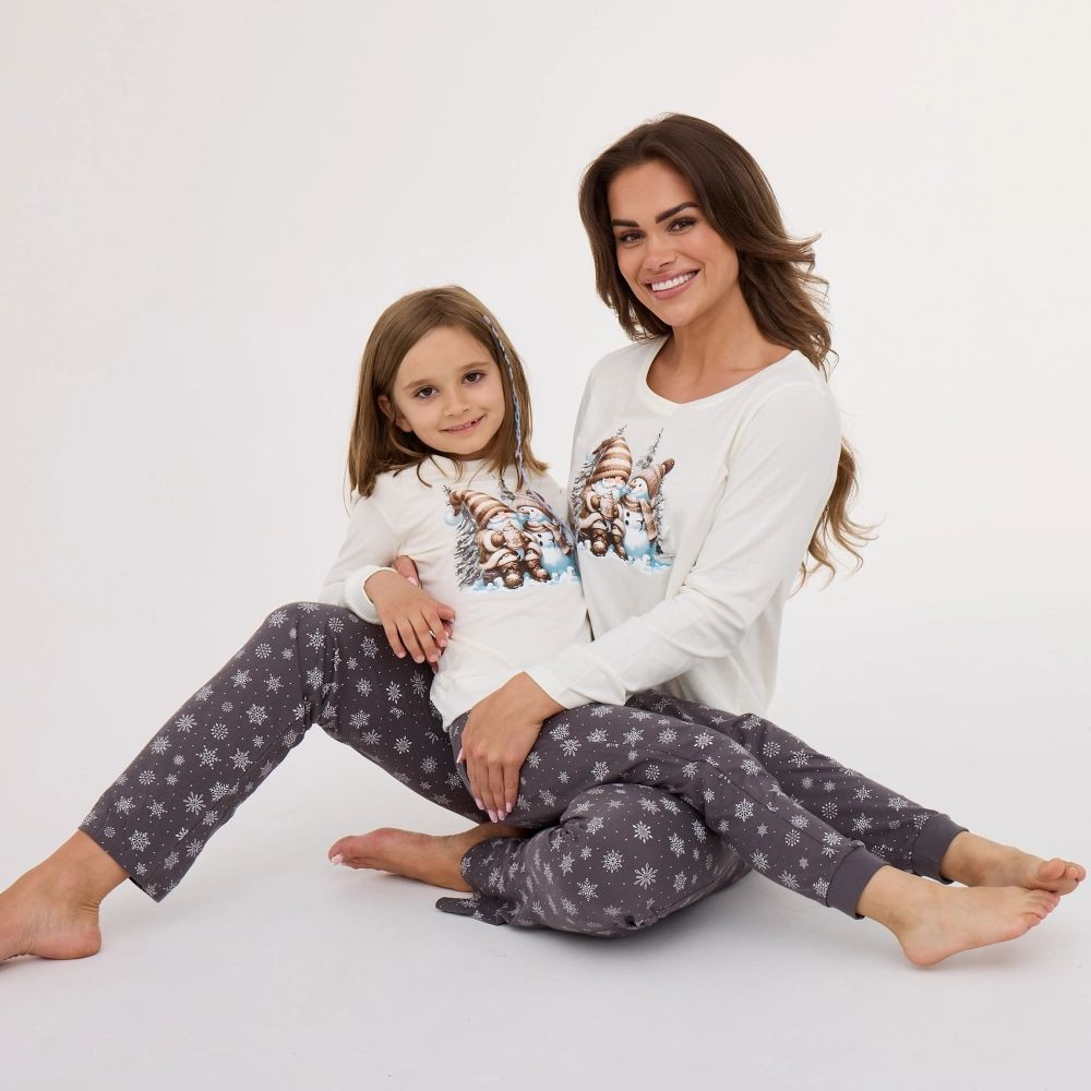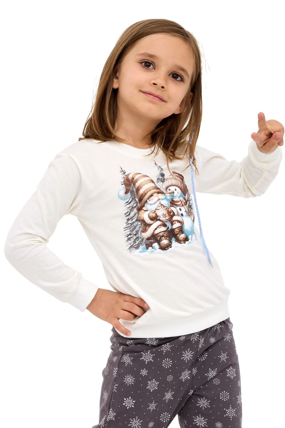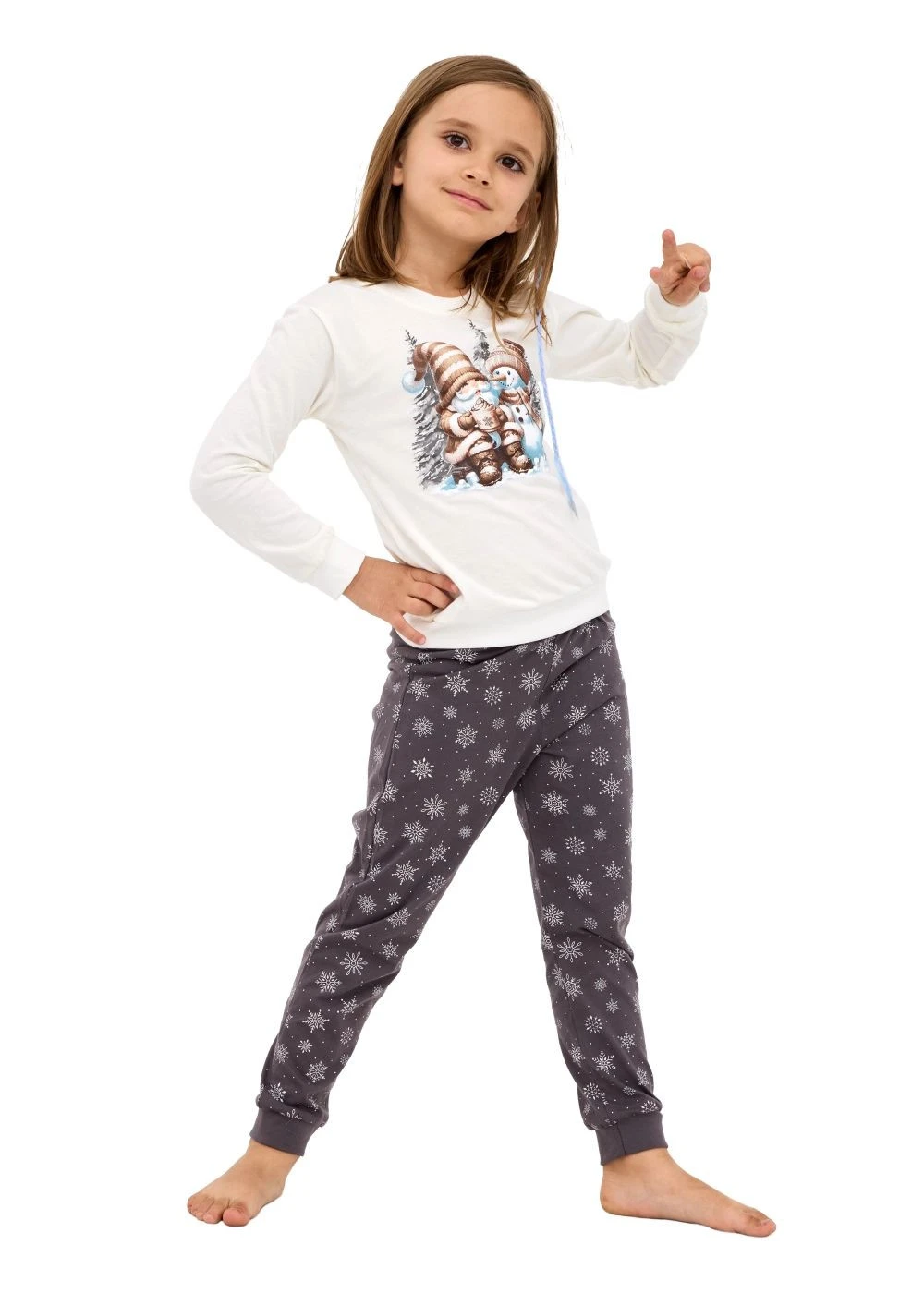 Dívčí pyžamo 977/190 Friends CORNETTE - z vysoce jakostní bavlny - krémové tričko s dlouhými rukávy - kulatý výstřih - přední strana ozdobená potiskem - dlouhé vzorované kalhoty zakončené stahovacím lemem