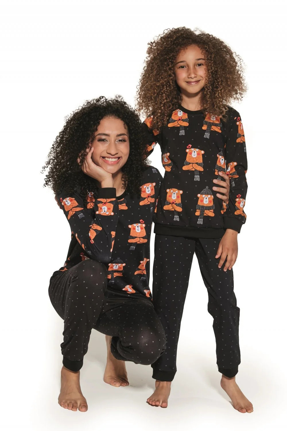 Dívčí pyžamo 996/148 Bear Cornette - vyrobené z vysoce kvalitní a měkké bavlny - černé tričko s dlouhými rukávy - s úžasným potiskem - dlouhé puntíkované kalhoty