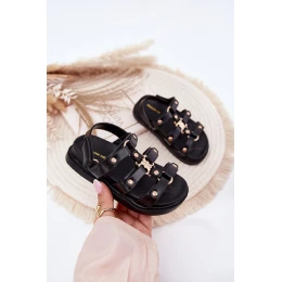Dívčí sandály se zlatým detailem černé model 21701005 - Boto