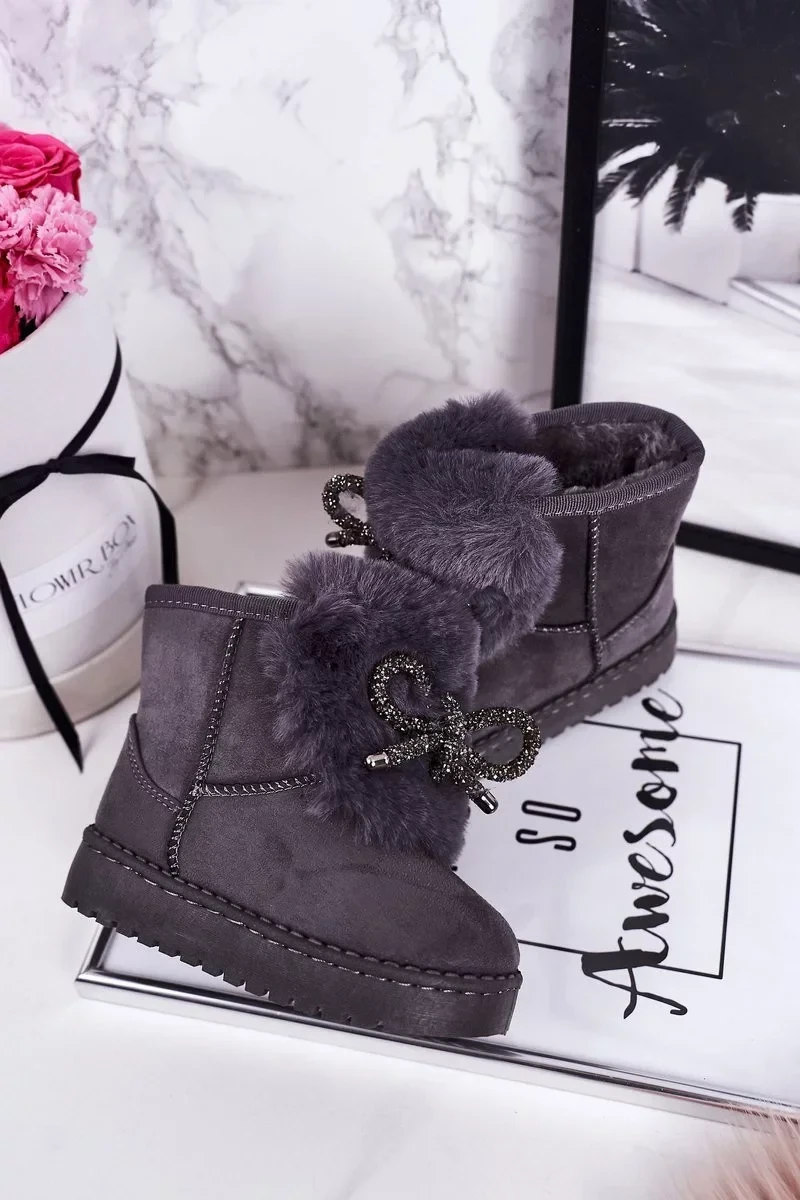 Dívčí Sněhové Teple Boty S Kožešinou Semišové šedé Amelia