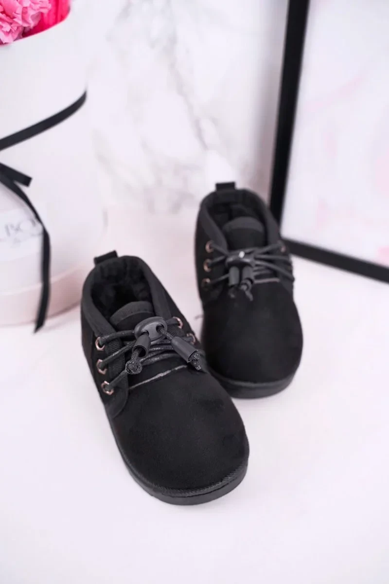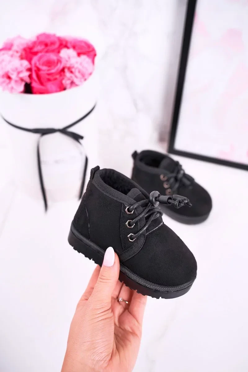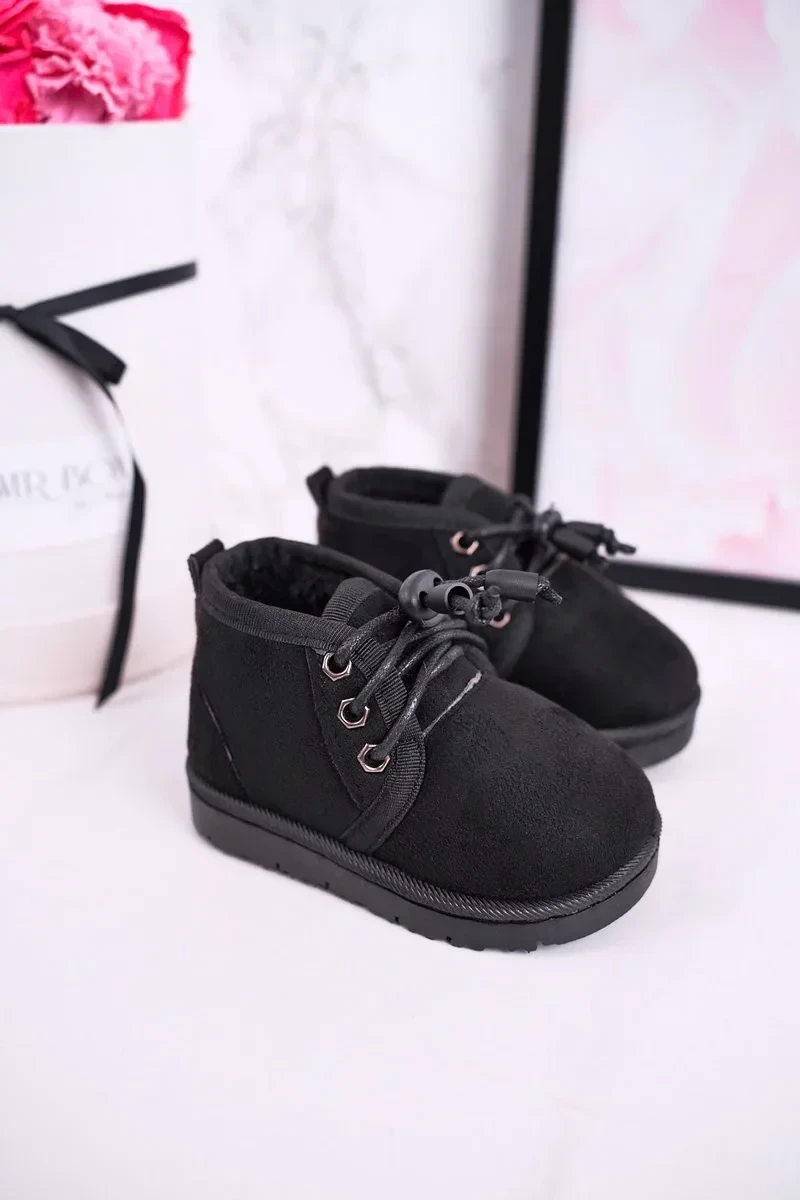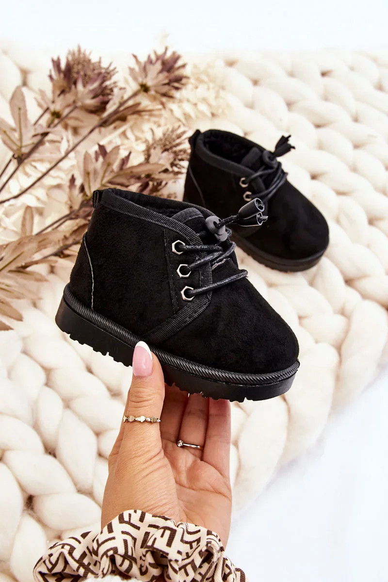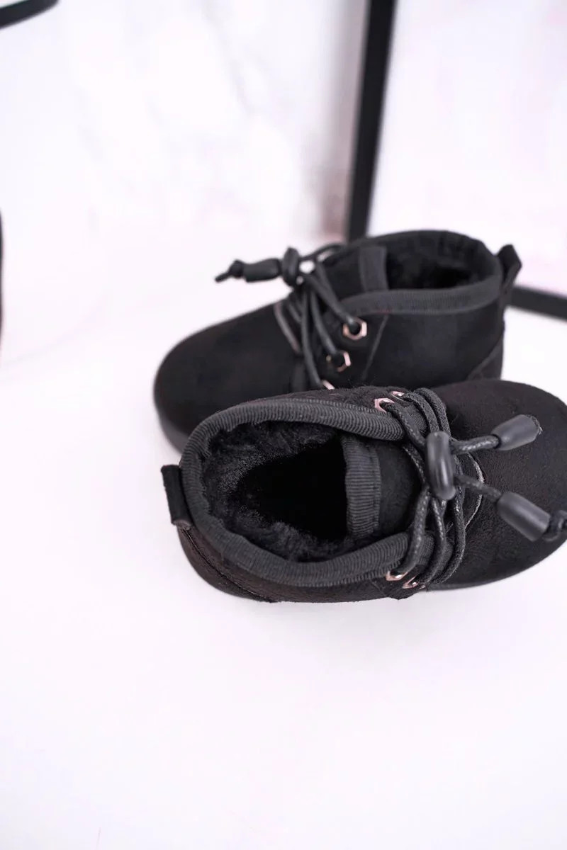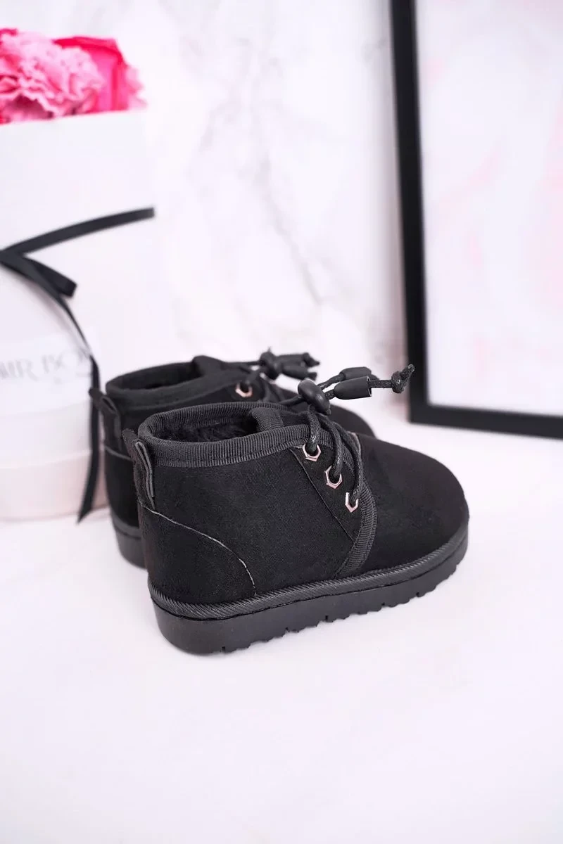 Dívčí šněrovací Sněhové Boty S Kožešinou černé Hunter