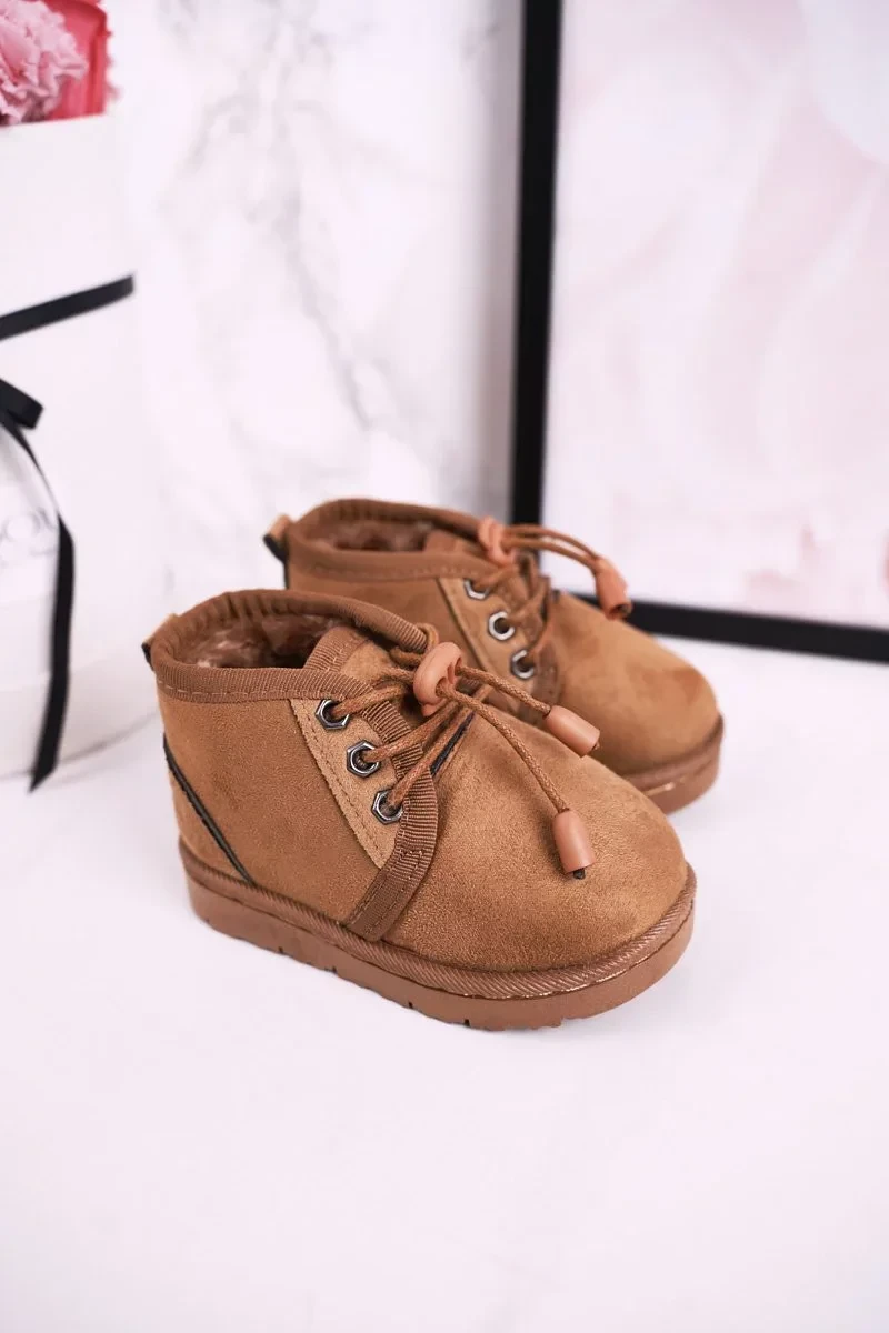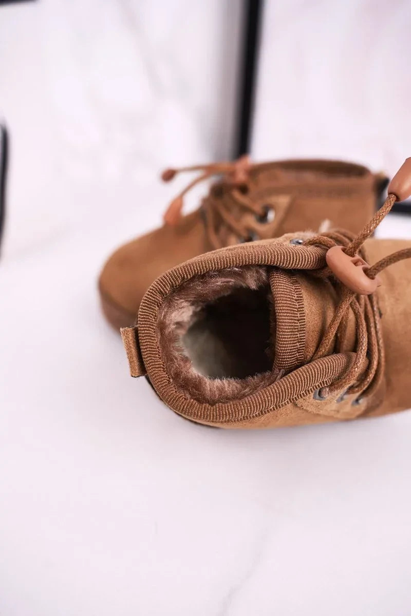 Dívčí šněrovací Sněhové Boty S Kožešinou Hnědé Hunter