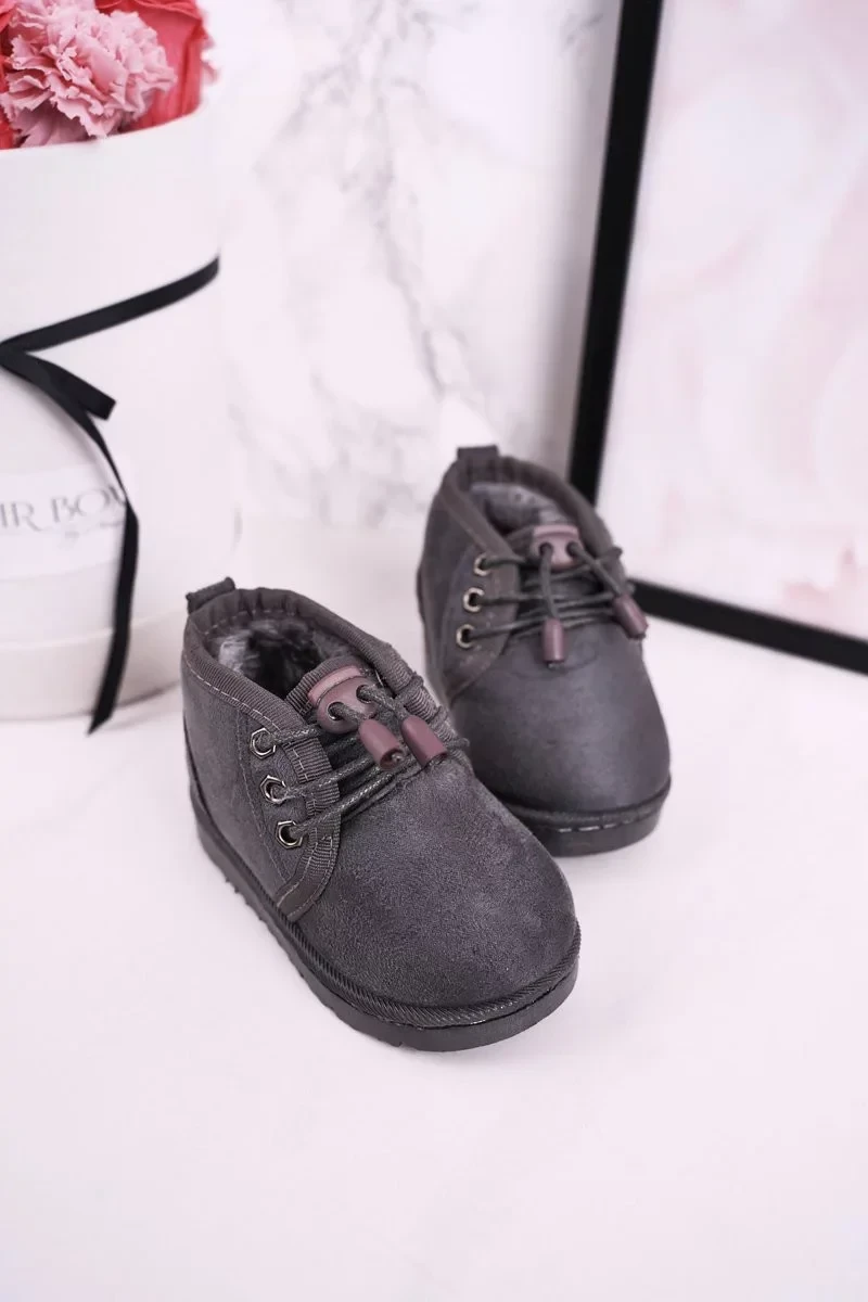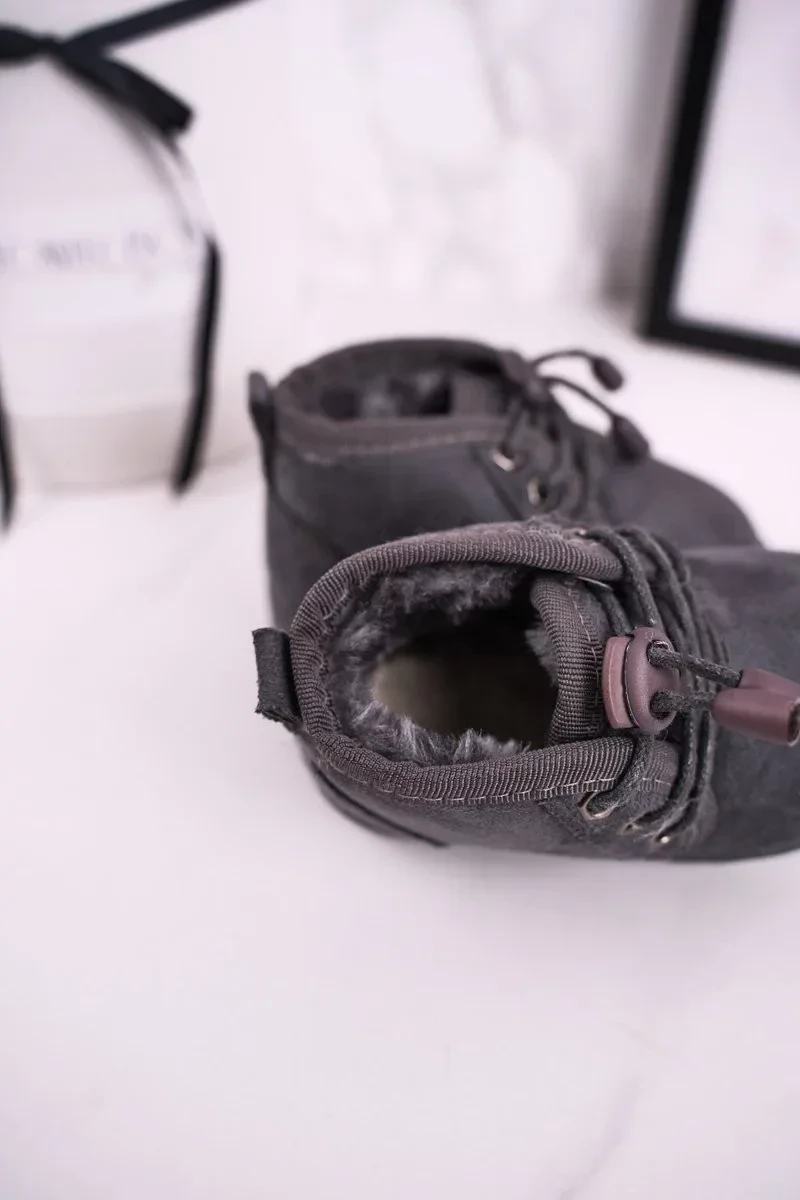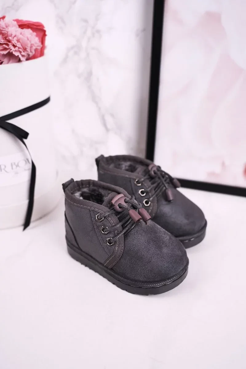 Dívčí šněrovací Sněhové Boty S Kožešinou Šedé Hunter