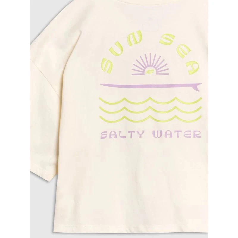 Dívčí tričko oversize crop top s potiskem model 21436025 - 4F