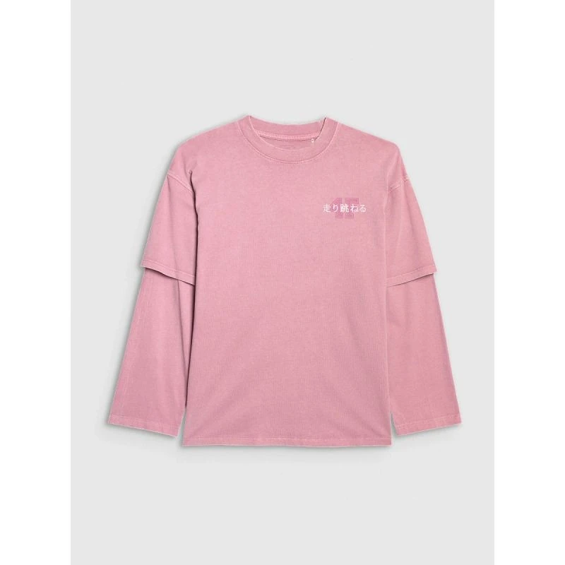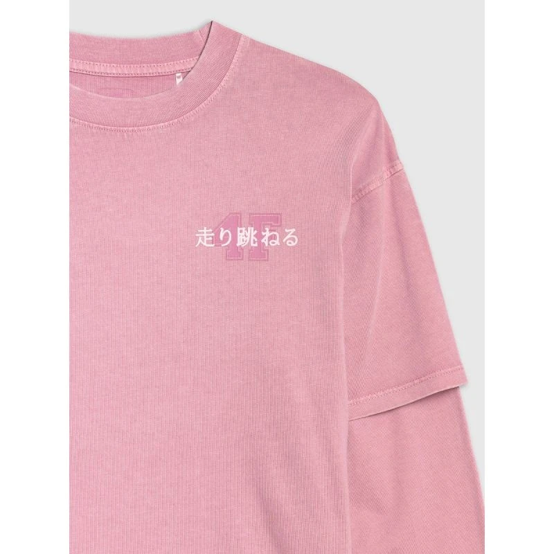 Dívčí tričko oversize s potiskem a dlouhým rukávem 4F 4FJRAW25TLONF543-54S