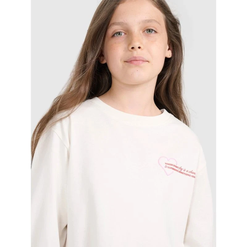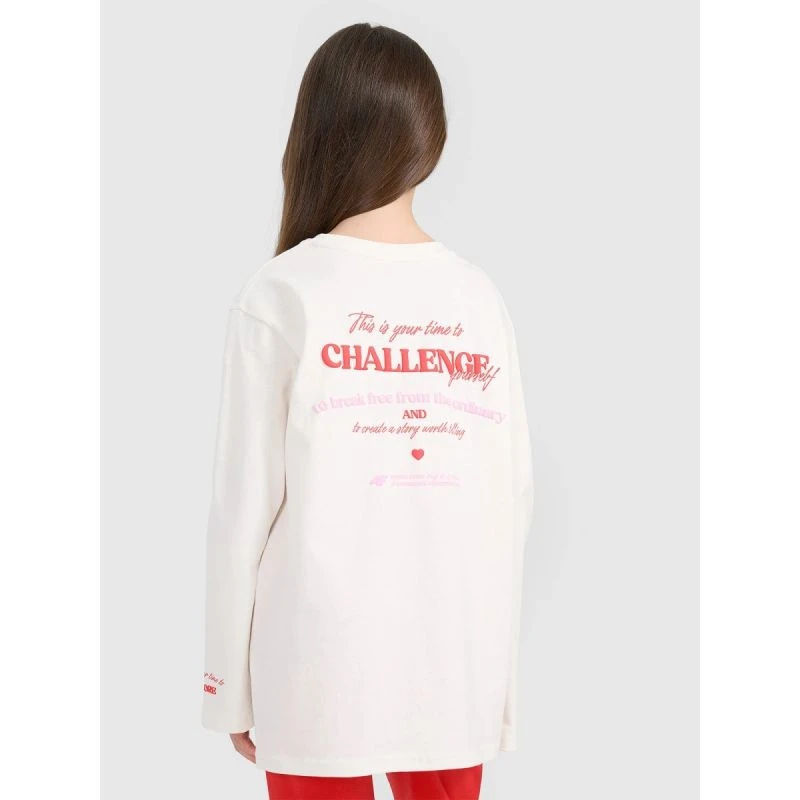 Dívčí tričko oversize s potiskem a dlouhým rukávem 4F 4FJRAW25TLONF589-11S