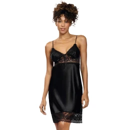 Noční košile značky Dkaren, model Agatha, vyrobeno ze 100% polyesteru, plastové háčky, nastavitelná ramínka, délka: mini, ženská, výstřih: špičatý.