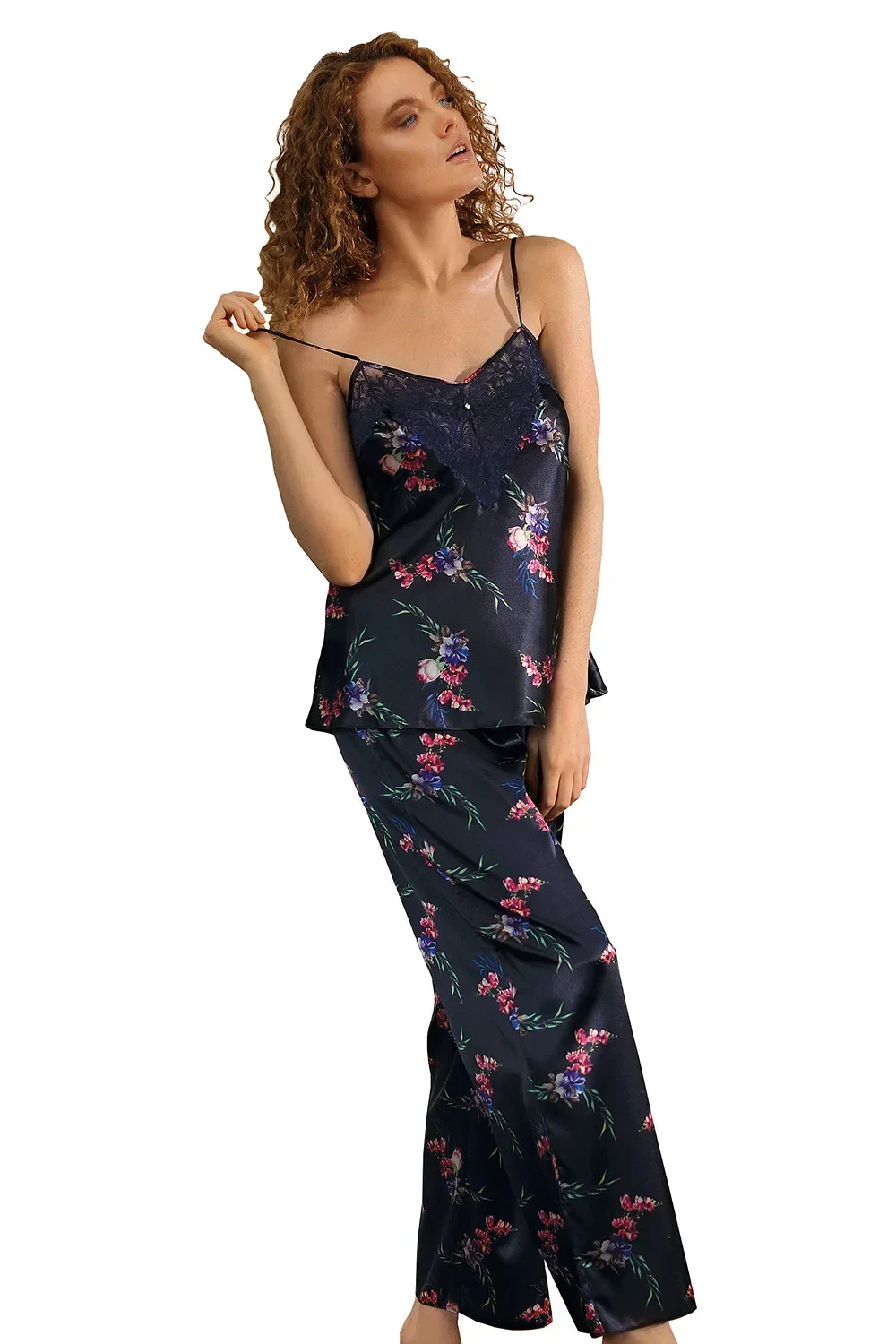 Noční košile značky Dkaren. model DK-KC-009. výrobek je vyroben ze 100% polyesteru. vlastnosti výrobku: saténová květinová prezentace. háčky na ramínka jsou plastové. výrobek má nastavitelná ramínka. délka: dlouhá. dámský výrobek.
