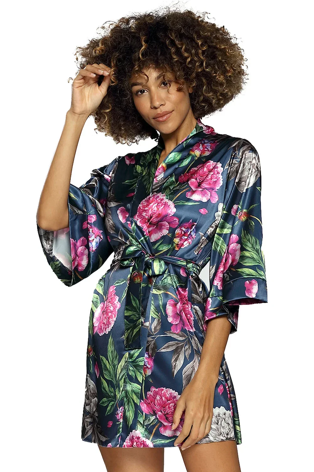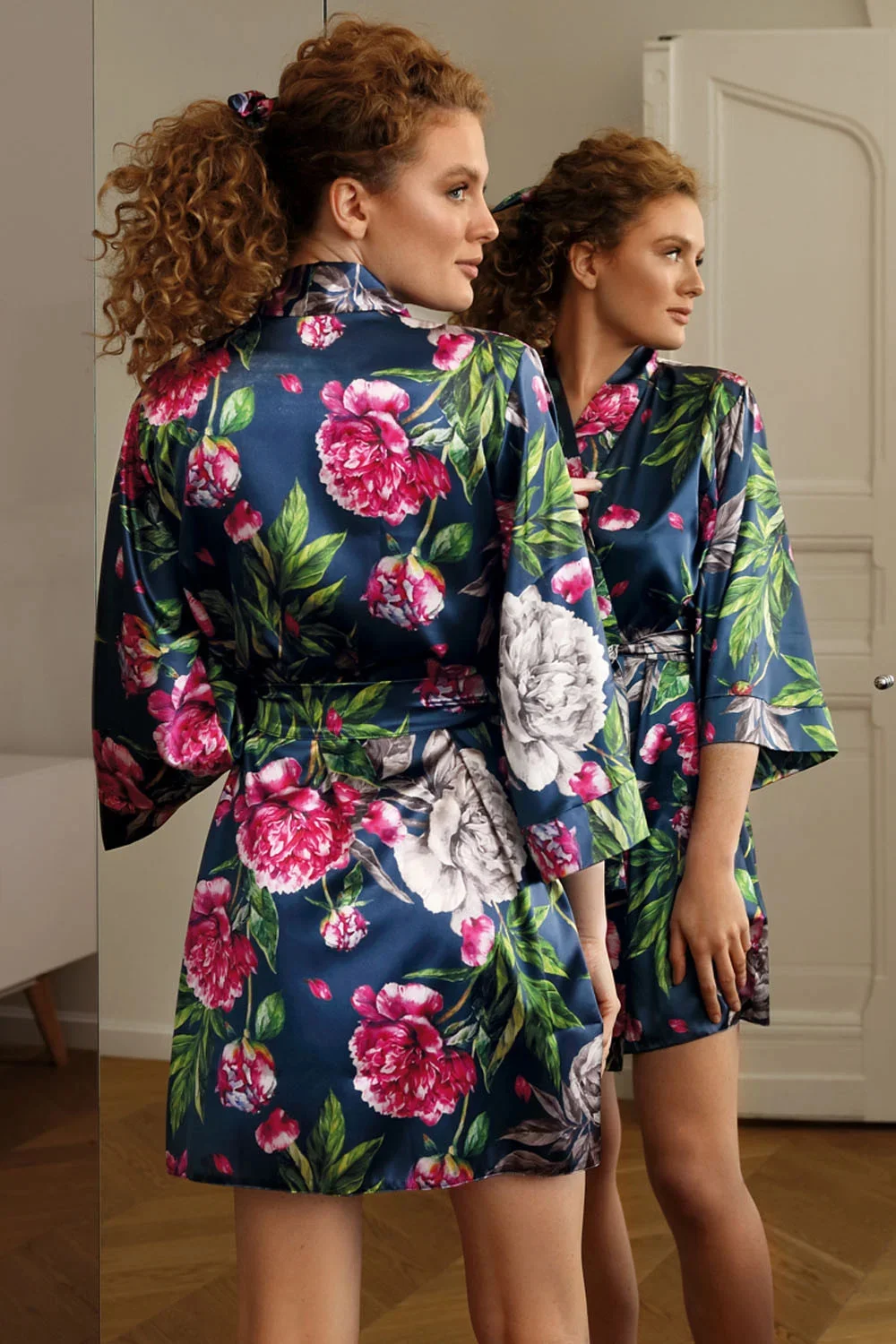 Noční košile značky Dkaren. Model DK-P-001. Výrobek je vyroben ze 100% polyesteru. Vybavení výrobku: saténový dárek s květy. Místo zapínání: vpředu. Noční košile se zapíná na zavazování. Délka rukávu: dlouhý rukáv. Dámský výrobek.