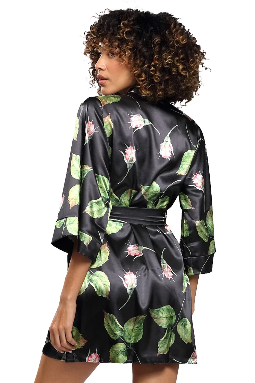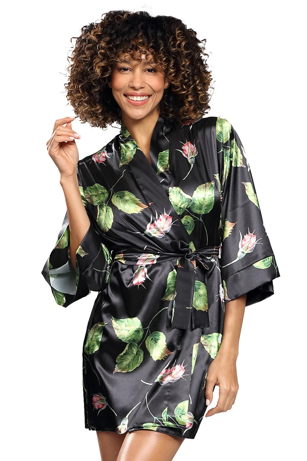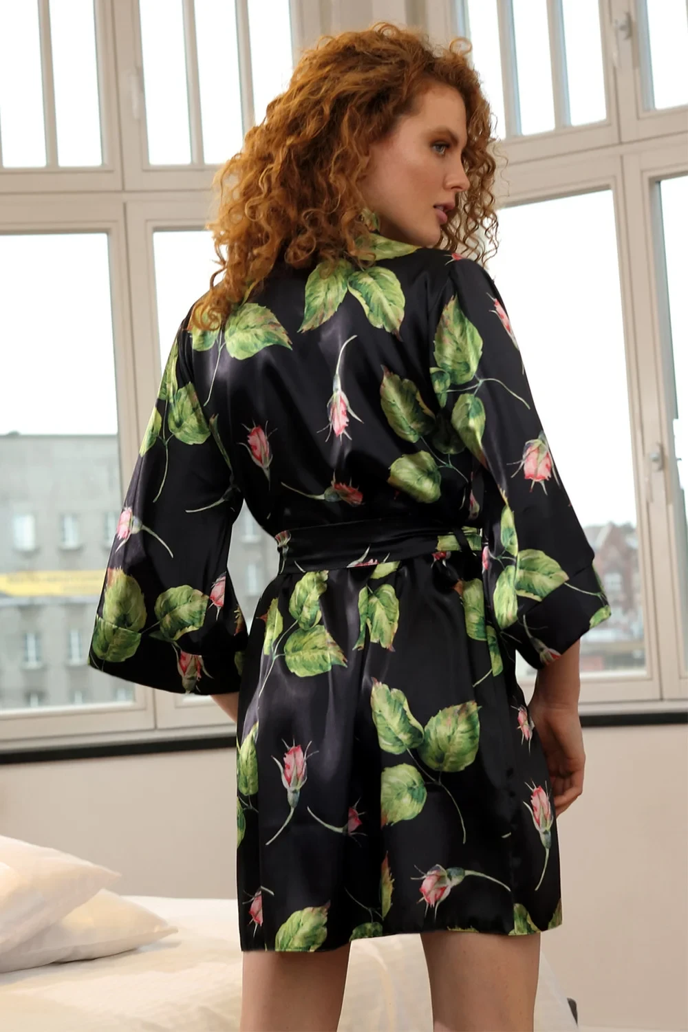 Noční košile značky Dkaren. model DK-P-008. Výrobek je vyroben ze 100% polyesteru. Vlastnosti výrobku: saténový župan v květinovém dárku. místo zapínání: vpředu. délka rukávu: 3/4. Dámský výrobek.