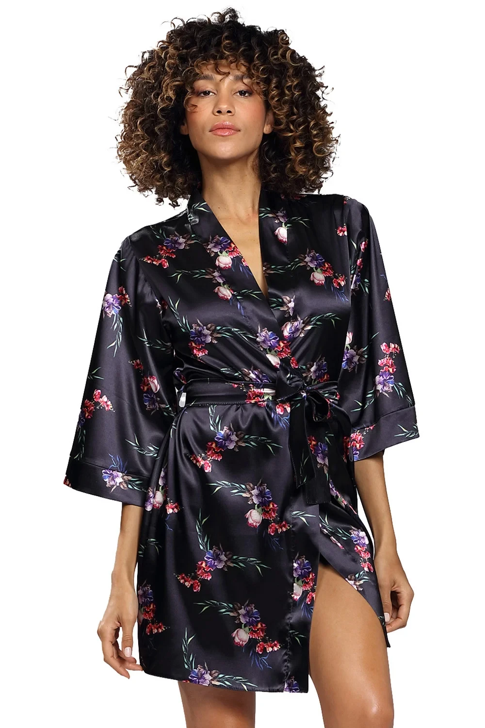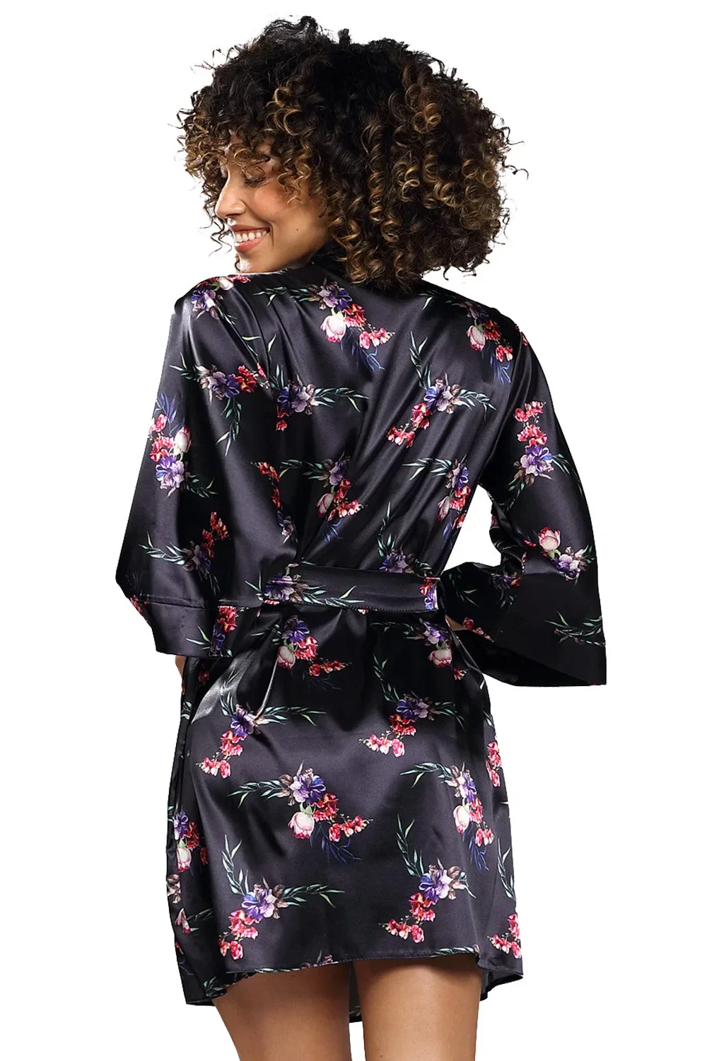 Noční košile značky Dkaren. model DK-P-009. výrobek je vyroben ze 100% polyesteru. vlastnosti výrobku: saténový župan v květinovém dárku. místo zapínání: vpředu. délka rukávu: 3/4. dámský výrobek.