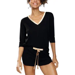 Noční košile značky Dkaren. model Edith. výrobek byl vyroben z 92% viskózy, 8% elastanu. délka rukávů: 3/4. délka: krátká. dámský výrobek. typ výstřihu: špičatý.