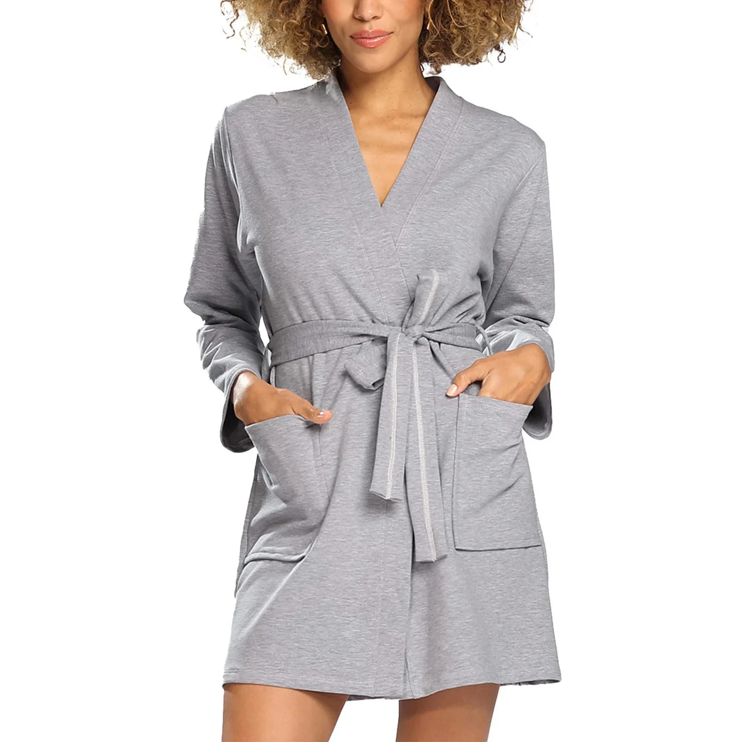 Nocna marki Dkaren. Model Pola. Produkt został wykonany z 95% bawełna, 5% elastan. Posiada kieszenie. Produkt damski. Długość: krótkie. Miejsce zapięcia: przód. Nocna zapinany na wiązane. Długość rękawa: długi rękaw.