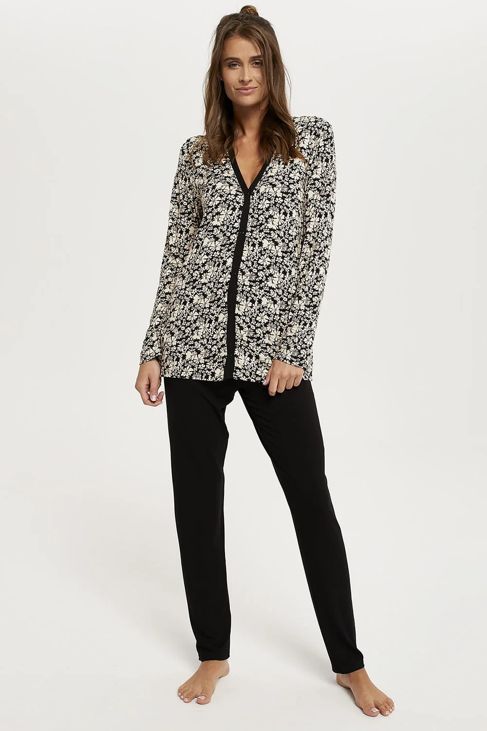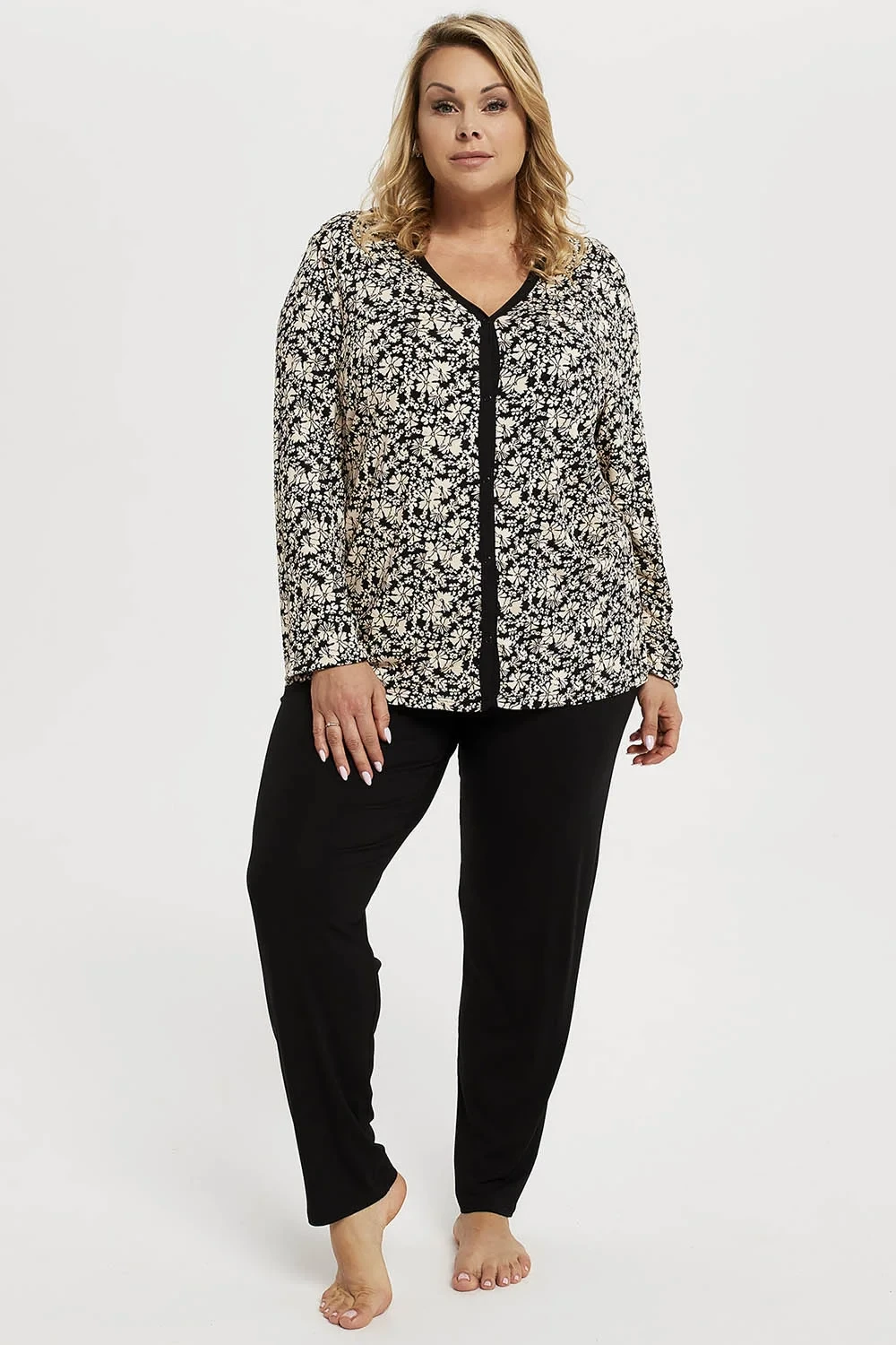 Noční prádlo italské módy. Habešský model dlouhý.r. délka.sp.. Výrobek je vyroben z 90 % z viskózy a 10 % z elastanu. Výrobek pro ženy. Zapínání: vpředu. Noční stolek se zapíná na patentky. Délka rukávu: dlouhý rukáv.