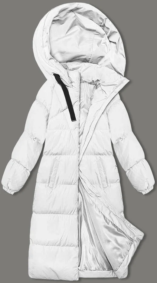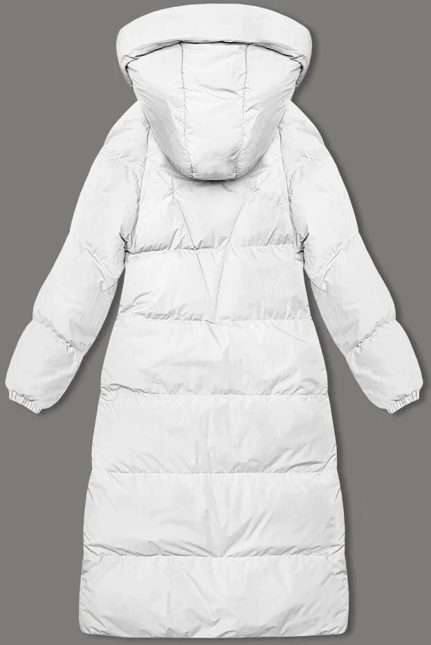 Dlouhá bílá hrubší dámská bunda s kapucí (5M3163-281)