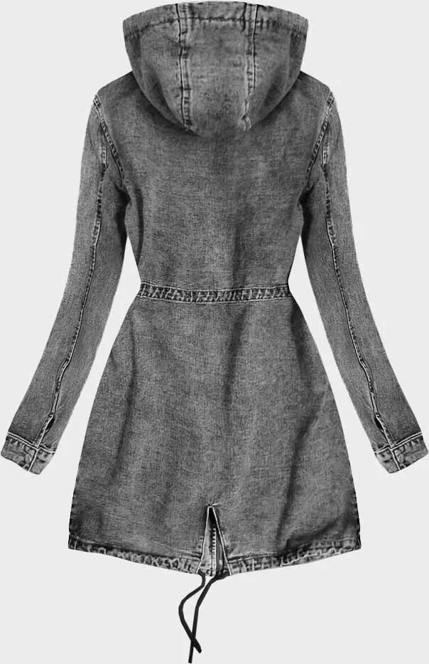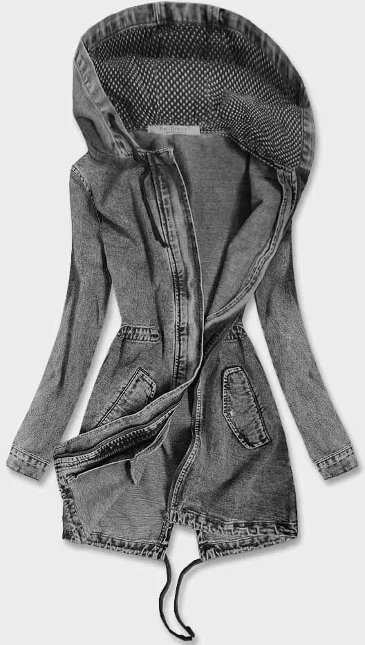 Dlouhá černá dámská džínová bunda s kapucí model 18242897 - Re-Dress