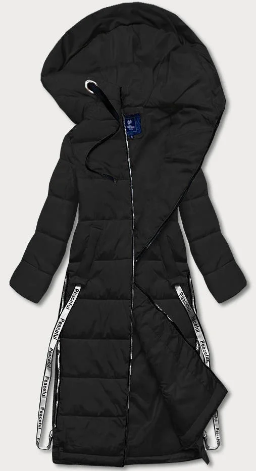 Dlouhá černá dámská péřová bunda (AG3-3038)