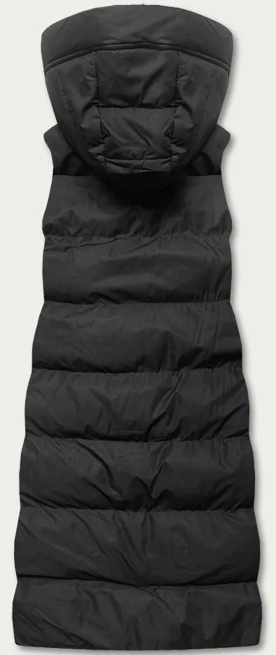 Dlouhá černá dámská péřová vesta (5M728-392)