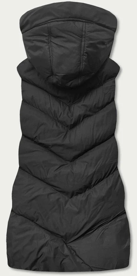 Dlouhá černá dámská vesta s kapucí (5M788-392)