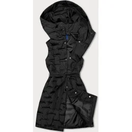 Dlouhá černá dámská vesta s páskem (JIN217)