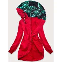 Červená dlouhá dámská rozepínací mikina s kapucí LHD (AMG-693A)
