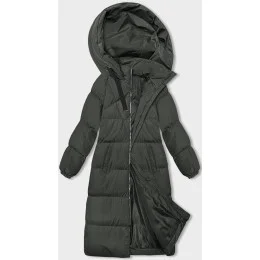 Dlouhá dámská hrubší bunda v army barvě s kapucí (5M3163-136)