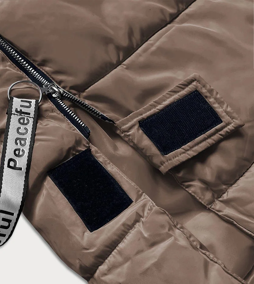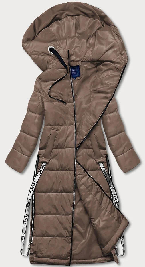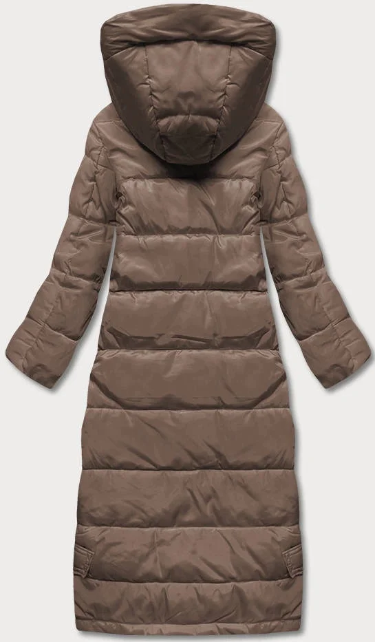 Dlouhá dámská péřová bunda v barvě coffee (AG3-3038)