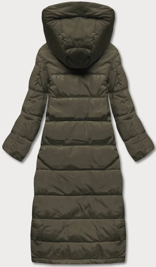 Dlouhá dámská péřová bunda v khaki barvě (AG3-3038)