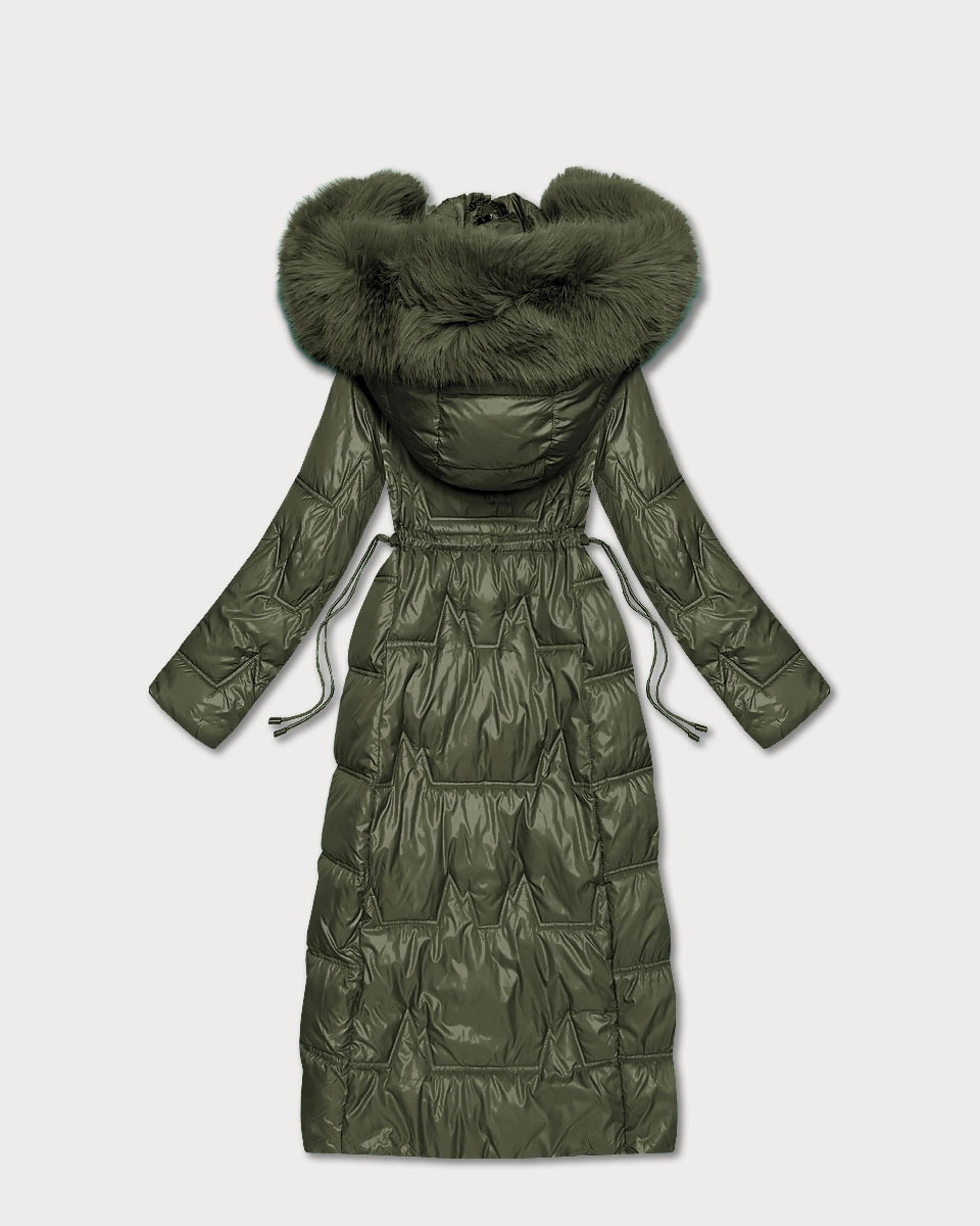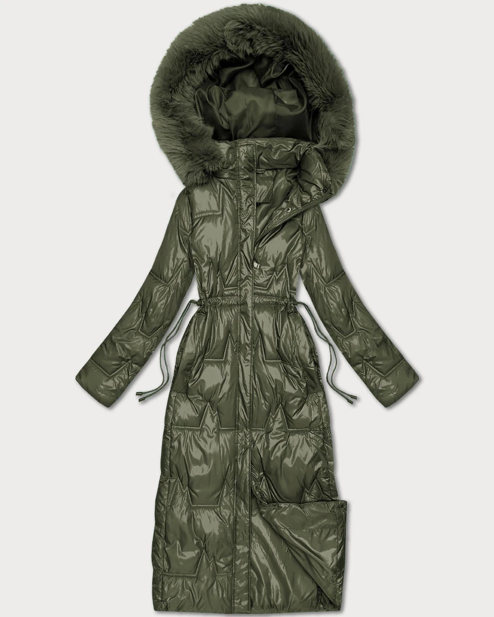 Dlouhá dámská prošívaná zimní bunda v barvě khaki (T2-2221#-22)