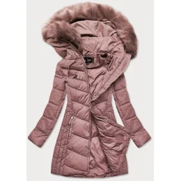 Dlouhá dámská prošívaná zimní bunda ve starorůžové barvě (7689)
