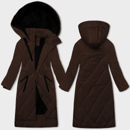 Dlouhá dámská zimní bunda v čokoládové barvě (5M3168-158)