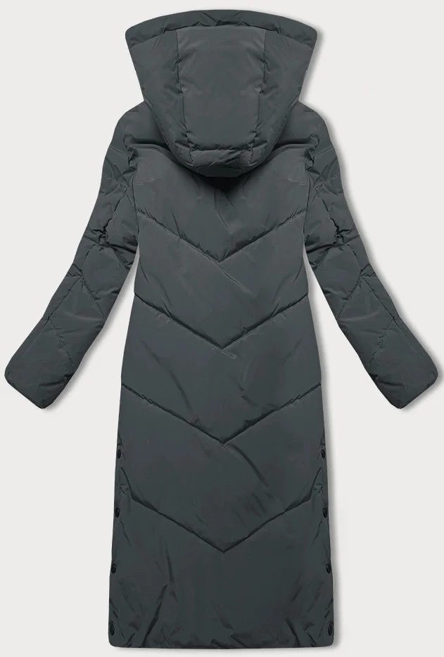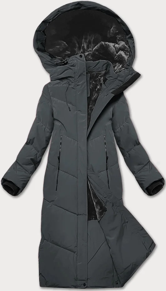Dlouhá dámská zimní bunda v grafitové barvě s kožešinovou podšívkou LHD (LHD-24571)