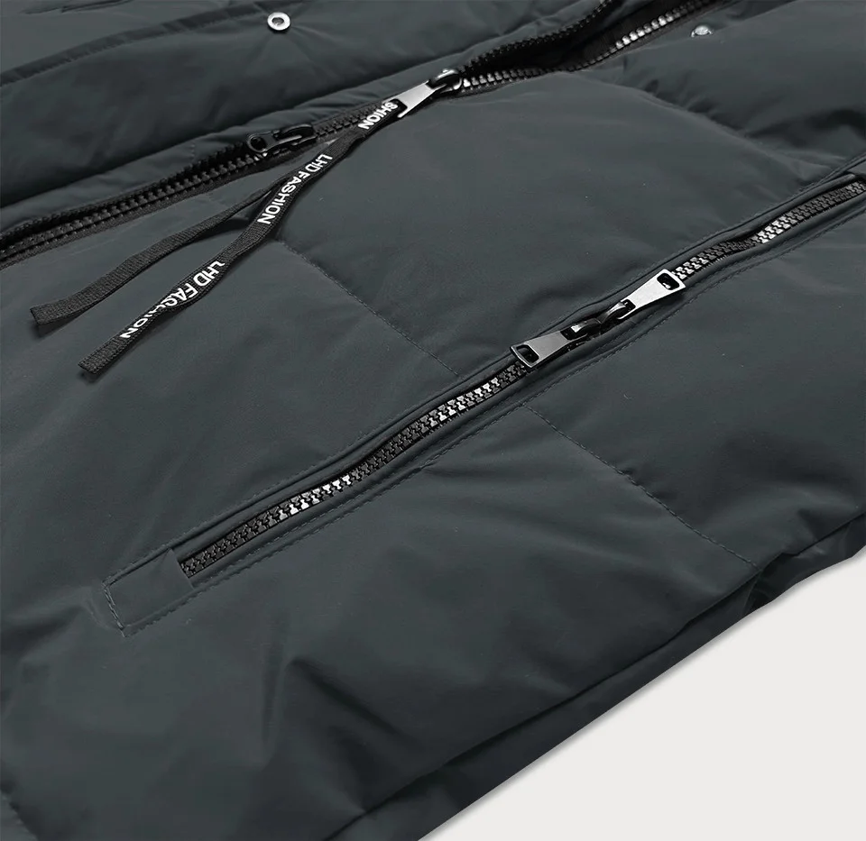 Přidání recenze k Dlouhá dámská zimní bunda v grafitové barvě s kožešinovou podšívkou LHD (LHD-24571)