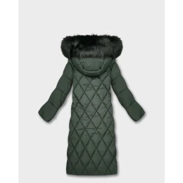 Dlouhá dámská zimní bunda v lahvově zelené barvě s kapucí model 21248699 - Libland