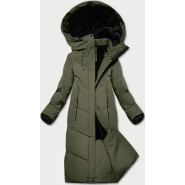 Dlouhá dámská zimní bunda v olivové barvě s kožešinovou podšívkou model 21247917 - LHD