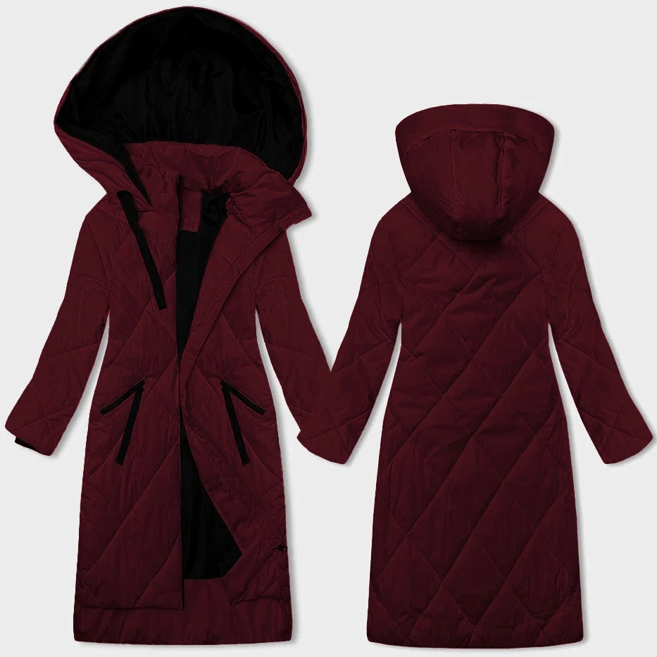 Dlouhá dámská zimní bunda ve vínové bordó barvě (5M3168-1)
