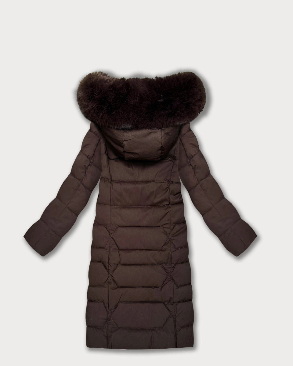 Dlouhá hnědá dámská bunda s kapucí (7665#)