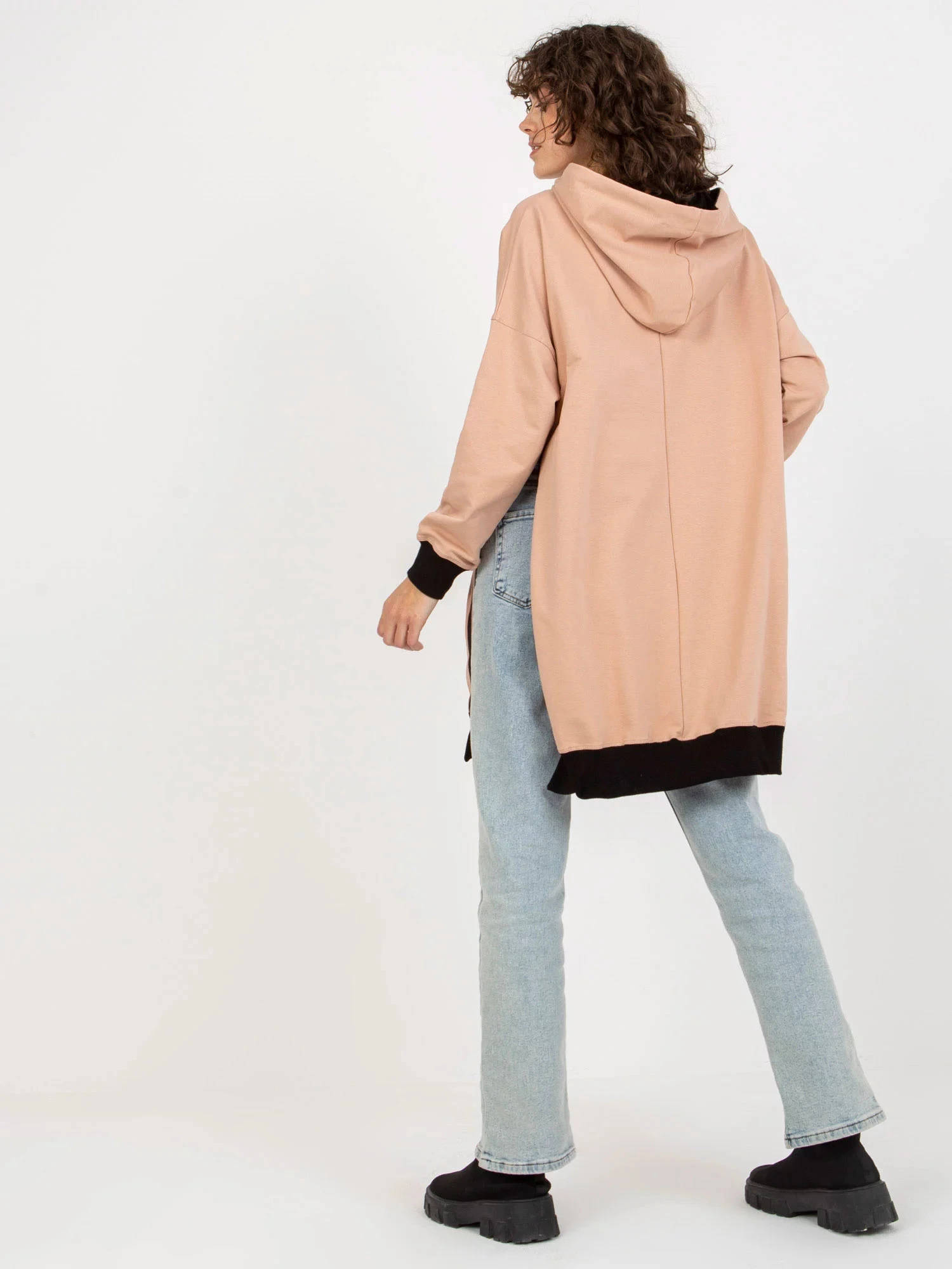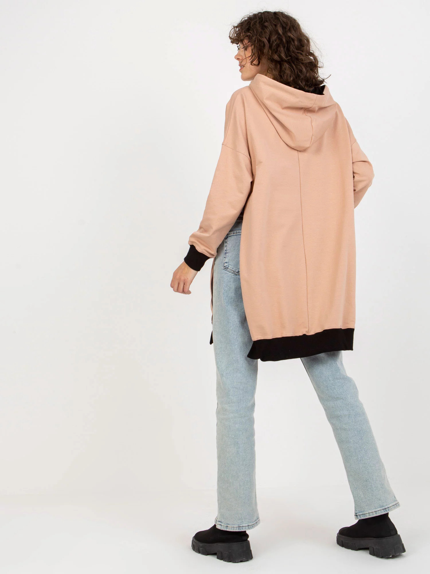 Béžová dlouhá oversize mikina s kapucí a nápisem .