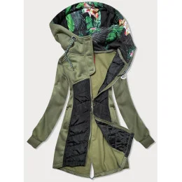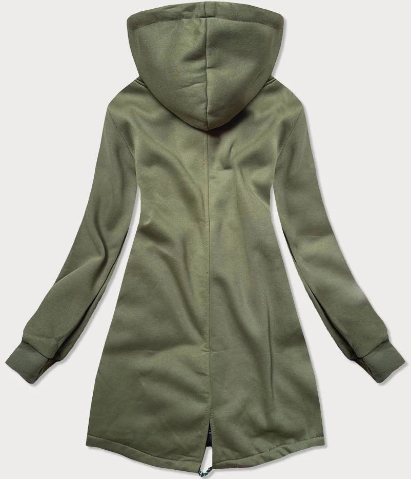 Dlouhá rozepínací dámská mikina v khaki barvě model 15819863 - LHD